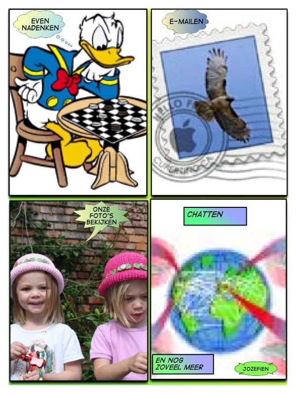 Eigen werk ingezonden door ons oudste clublid Jozefien De Wolf - Peeters. Sinds ze onlangs als 80-plusser in het bezit kwam van een échte Apple Mac, is ze daar alle dagen héél actief op bezig...